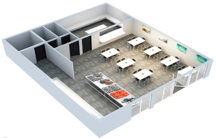 The design of a possible Coop Shop of 200 m2 with its suitable places for selling, processing, cooking and eating fish and for cultural activities (Source: Flyer of the “Know Your Fisher Project”)