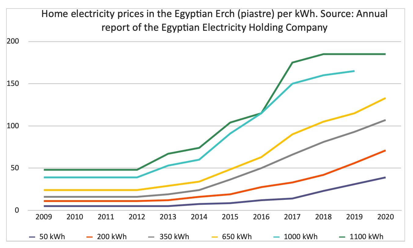 In summary, international financing has not only succeeded in extricating Egypt from the electricity production crisis, but ended pushing for unnecessary electricity projects. However, this form of financing came with the condition of dismantling state control over the electricity sector and has increased the dominance of private companies over the public service of providing electricity. However, international financial institutions, particularly the World Bank, argue differently. They describe the commodification of electricity as presenting ‘social reforms’ that redirect support to those most in need – an argument that will be tested in the following section, through an inquiry into the social effects of the recent changes to electricity provision.