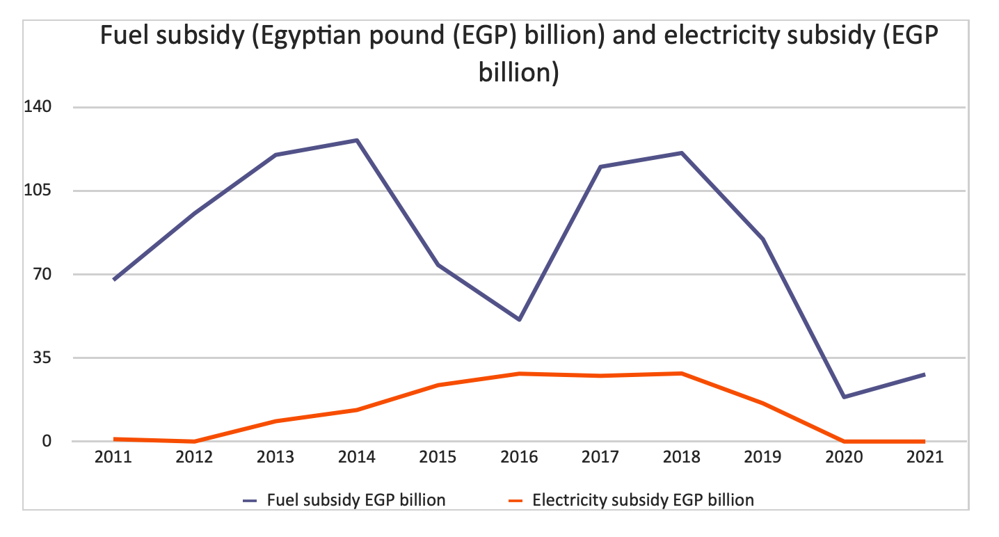 Figure V: Fuel subsidy (Egyptian pound (EGP) billion) and electricity subsidy (EGP billion)