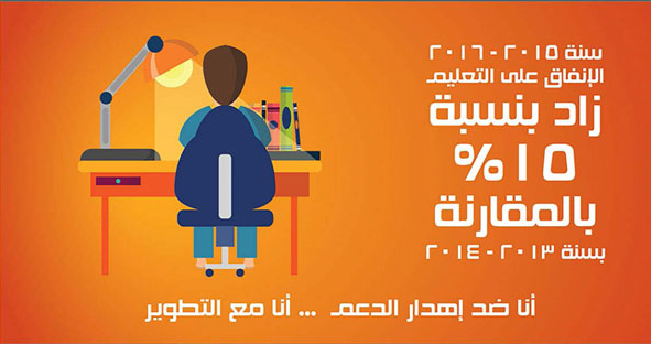 Figure VIII: Egyptian Government campaign (‘In the year 2015–2016, spending on education increased by 15 per cent in comparison to 2013–2014. I am against wasting subsidies; I stand with development.’)