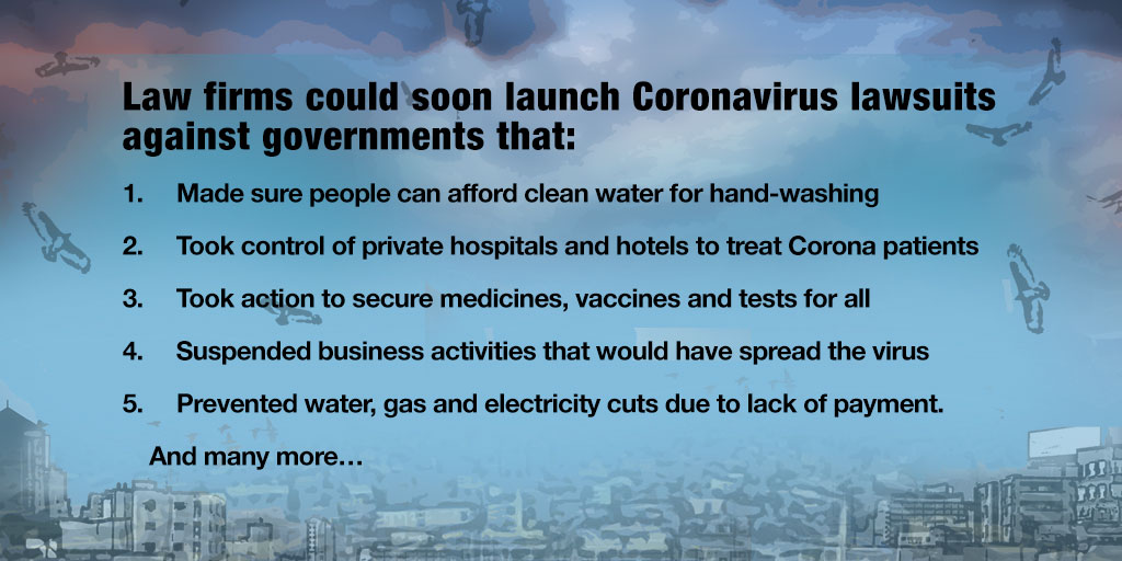 As governments take action to fight the COVID-19 pandemic and prevent economic collapse, big law firms are watching the virus too. Yet their concern is not to save lives or the economy. Instead the lawyers urge big business to challenge emergency measures in order to defend their profits. In a parallel corporate justice system called ISDS, states could face multi-million dollar lawsuits.