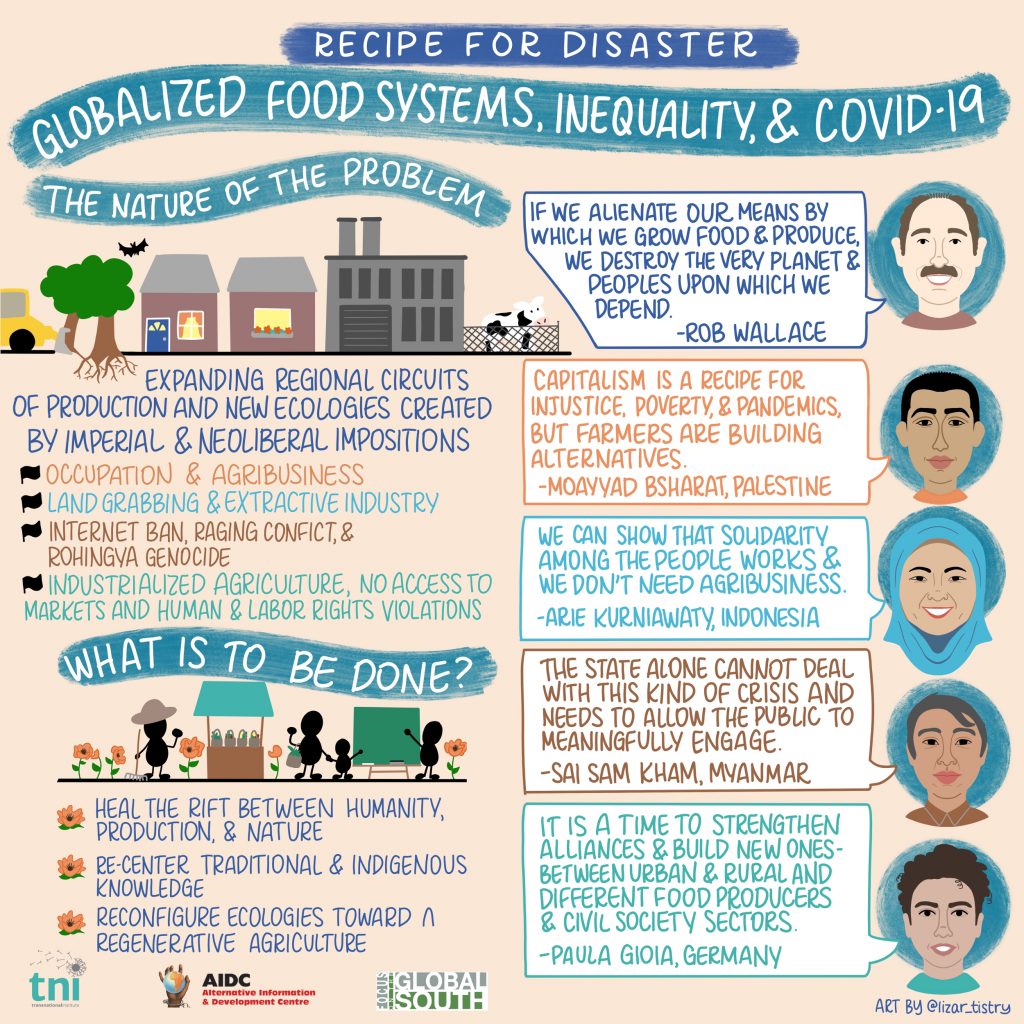 We will certainly all remember 2020 for the way it turned our lives upside down, but what will its long-term repercussions be on our political, economic and social systems? The virus may have been invisible to the human eye, but this spiky protein particle exposed like never before the fractures and flaws of our manmade systems, accelerating certain trends, and demonstrating the need for transformative change to protect our health and the health of this planet. Between April and July 2020, Transnational Institute hosted a unique set of 12 global conversations to analyse the fallout from COVID-19 and to articulate the changes we need for a better world. The webinars took place in collaboration with allied organisations and partners around the globe, including AIDC and Focus on the Global South. This critical report pulls out the main analysis from those conversations, with a focus on the proposals and solutions put forward by activists and experts worldwide. We hope this report helps citizens and social movements analyse the crisis, inspires transnational solidarity and works towards the emergence of a more just world.