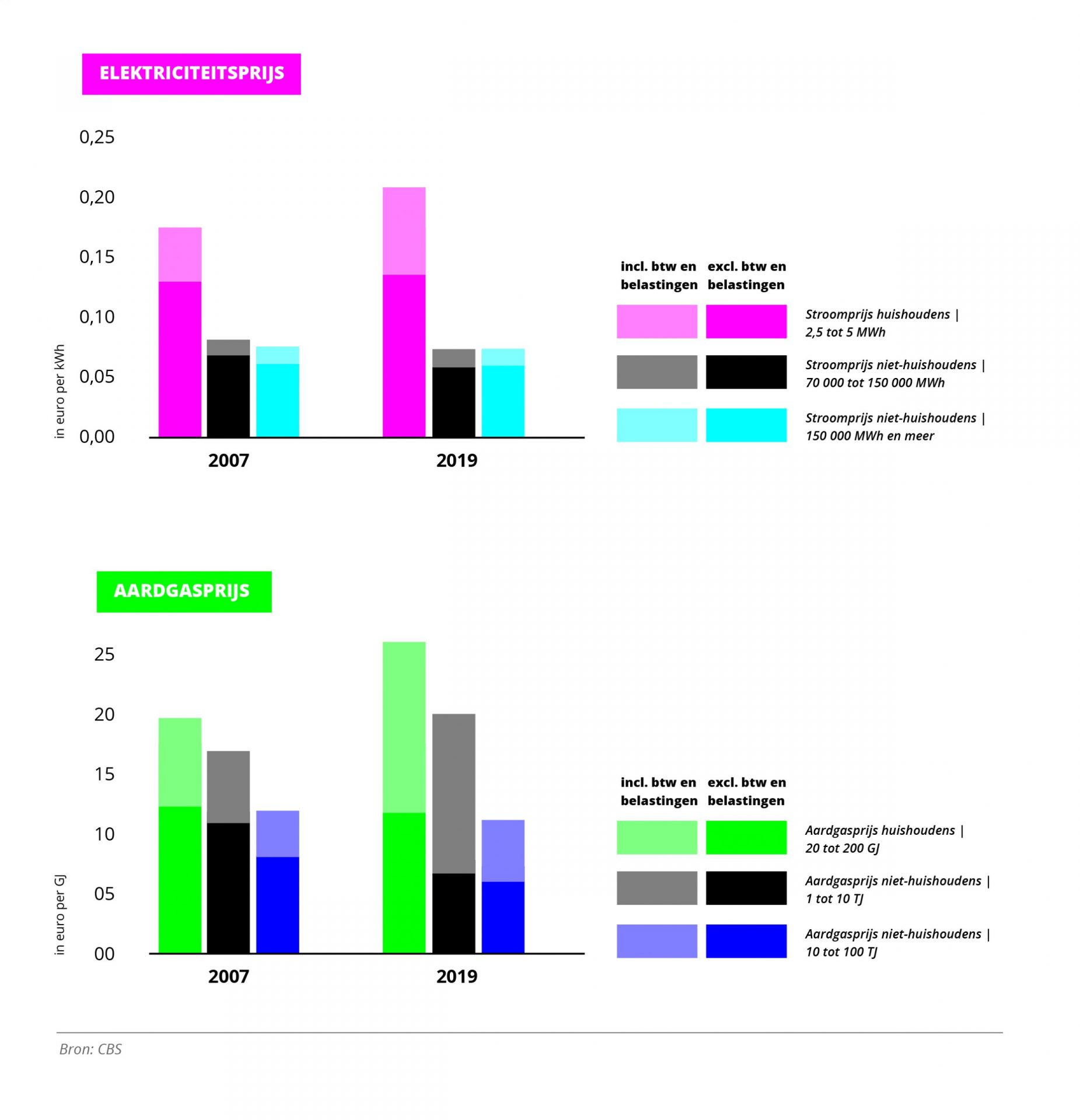 Het verbruik van fossiel gas legt op dit moment een groter beslag op het energiebudget van huishoudens. Ook hier zijn de prijzen voor huishoudens hoger dan voor het bedrijfsleven, al zijn de verhoudingen wat minder scheef dan op het gebied van elektriciteit. Het gat groeit echter wel: in 2005 betaalden huishoudens ongeveer anderhalf keer meer voor fossiel gas dan een grootverbruiker; in 2019 was dat ruim twee keer meer.