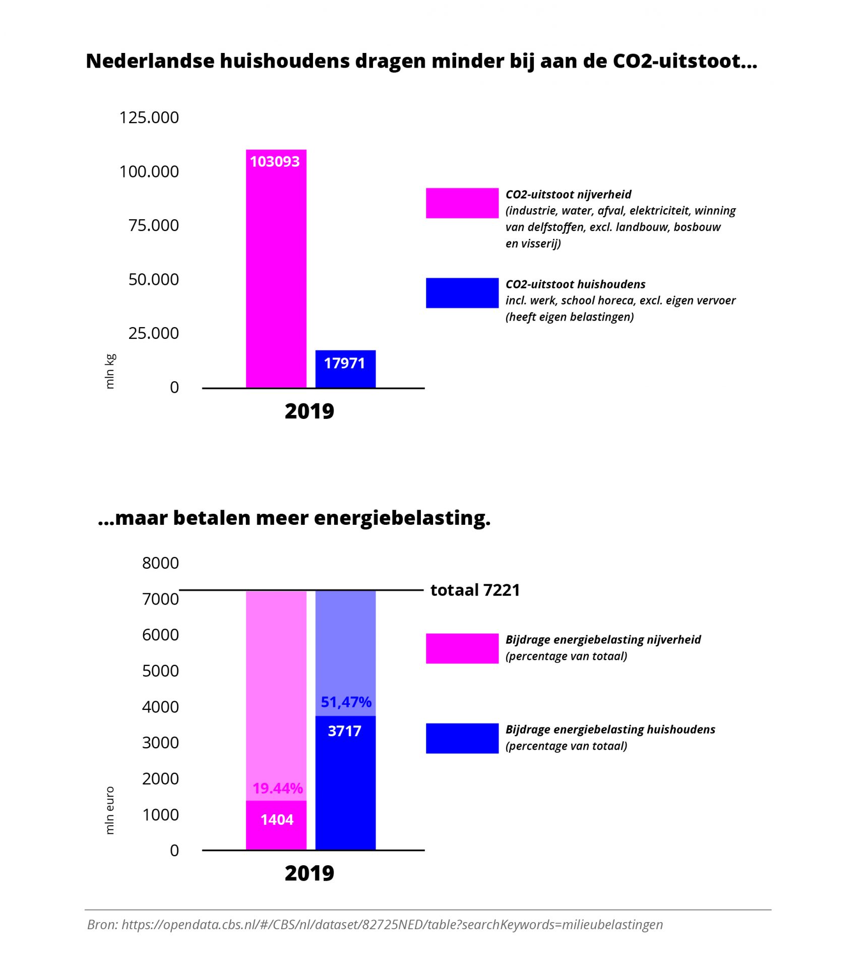 Huishoudens betaalden in 2019 iets meer dan de helft van de ruim 7 miljard euro aan energiebelasting die dat jaar bij de overheid binnenkwam. De bijdrage van de industrie was minder dan 20 procent.