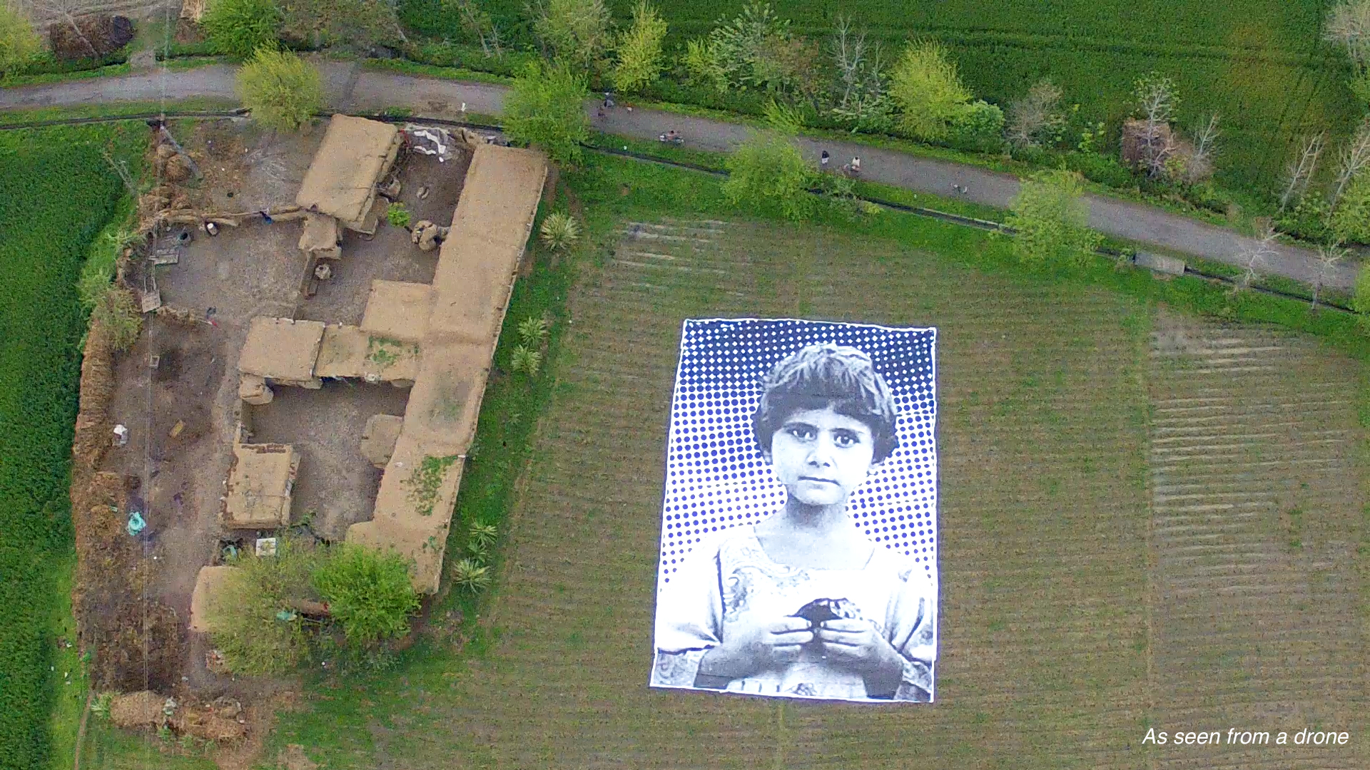 Staring up from this anonymous field in the drone-killing heartland of Khyber Pukhtoonkhwa within the Federally Administered Tribal Areas in Pakistan (known as ‘FATA’), the gigantic image, placed there by a group of French, American and Pakistani political artists, is of a local girl.