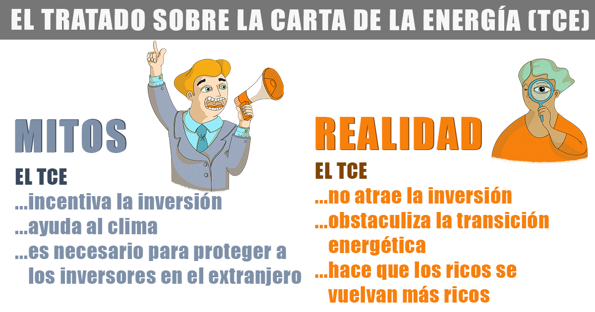 Sin embargo, intereses poderosos quieren impedir que los países se retiren del TCE e incluso quieren ampliarlo a nuevos Estados signatarios, y dirán lo que sea para lograrlo. A continuación, presentamos algunos de sus mitos para que puedas descifrar fácilmente cómo se manipula el discurso en torno al TCE.