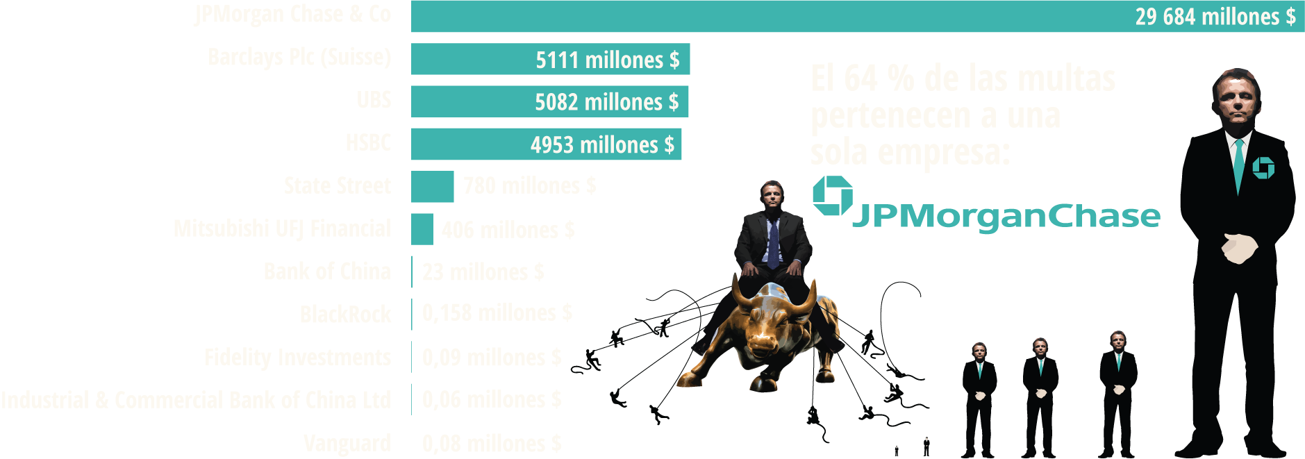Desde el año 2000, los 13 gigantes financieros mundiales han pagado 46 071 450 274 de dólares en multas, una suma que representa poco más del 10 % de las sanciones de las 327 000 demandas civiles y penales registradas.