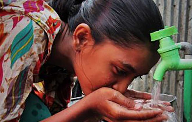Los trabajadores demuestran que gestionan el agua mejor que el operador privado / Dhaka, Bangladesh