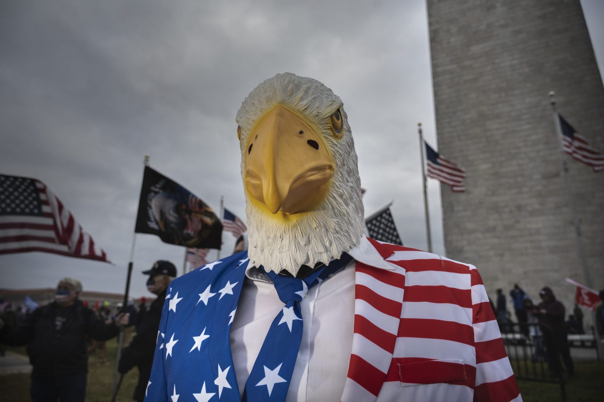 A man dressed as a bald eagle at Presiden Trump’s “Stop the Steal” rally at the Elipse.