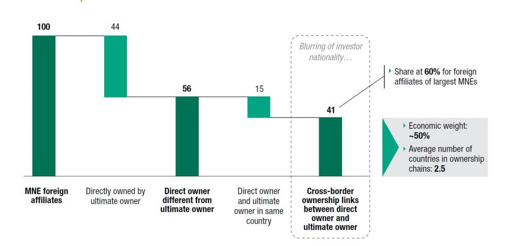 This shows that on average, the world’s top 100 MNCs each have more than 500 affiliates based across over 50 countries. They have seven tiers in their ownership structure (in other words ownership links to affiliates could potentially cross six borders), and include 20 holding companies owning affiliates across multiple jurisdictions, with almost 70 entities in offshore investment funds.