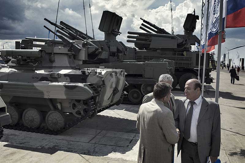 Russia, Moscow, 2012, The head of the Syrian delegation to Russia’s biennial arms bazaar shakes hands with a representative of Rosoboronexport, the Russian state weapons export monopoly. © Yuri Kozyrev / NOOR / IG Handels: @noorimages / Twitter Handels: @noorimages